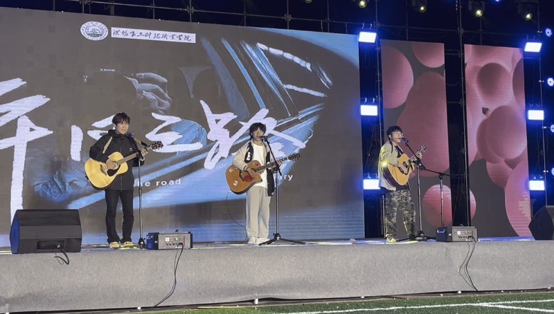 徐徐降临的夜幕就是最浪漫的前奏和铺垫。18点10分,晚会的暖场板块正式开始:艺术传媒系和医养健康系分别带来了舞蹈《灯光里的中国》和《彩云之南》;艺术传媒系的两位才子弹唱一首《安河桥》,深情诠释民谣自带的诉说腔调,令全场暂时沉入安静,代入进自己的理解和回忆里;由食品科技系选送的《游山恋》舞毕,全场掌声雷动,暖场结束,大戏开始。